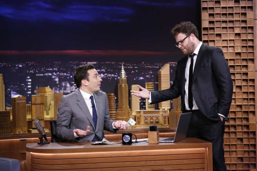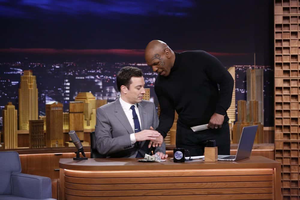 Then came out the slew of celeb guests after Jimmy joked, “To my buddy who said that I’d never be the host of ‘The Tonight Show,’ and you know who you are…you owe me a hundred bucks, buddy.” Will Smith, U2, Lady Gaga, Kim Kardashian, Rudy Guliani, Joan Rivers, Lindsay Lohan, Sarah Jessica Parker, Tracy Morgan, Seth Rogen and Mike Tyson all made appearances.