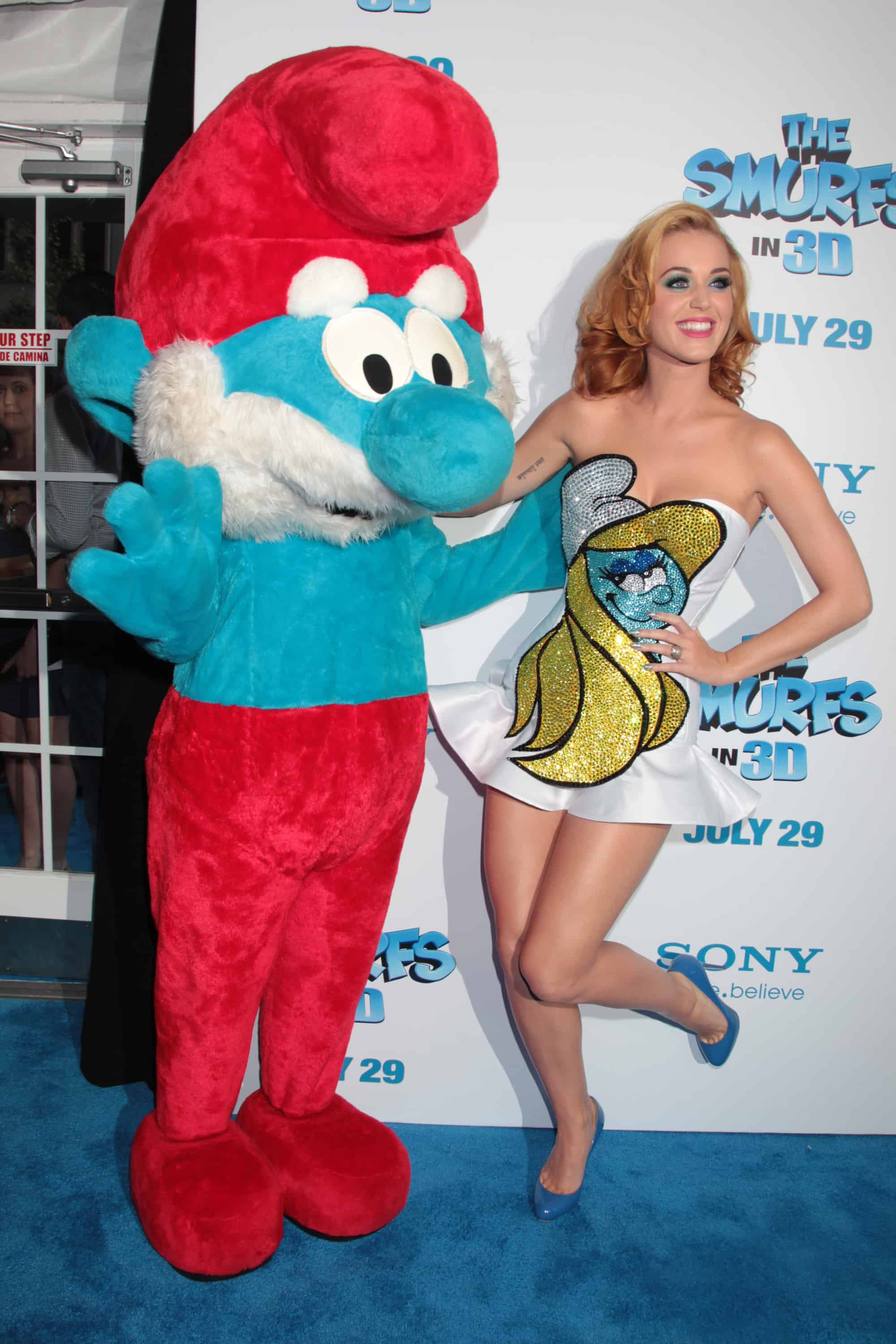 Katy Perry and Sofia Vergara looked beautiful at last night’s World premiere of The Smurfs at the Ziegfeld Theatre in New York City. Katy even wore a Smurfette dress  (she is the voice of Smurfette)…very cute and only Katy could pull it off! And Sofia was gorgeous in purple. The whole cast includes…Neil Patrick Harris, Jayma Mays, Sofia Vergara, Hank Azaria,Kevin James,Katy Perry,George Lopez, Jonathan Winters and Alan Cummings.